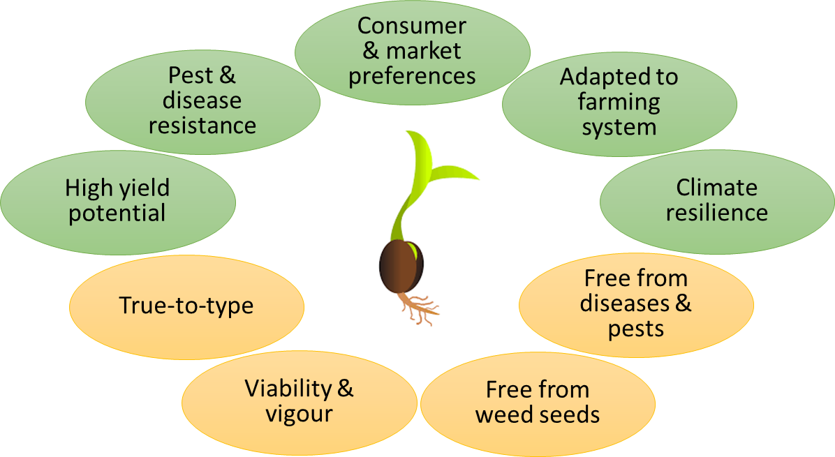 Genetic quality refers to the traits carried by the seed—such as yield potential, resistance to pests and diseases, and desirable processing or consumption qualities. These traits are determined by the variety and directly influence crop performance.