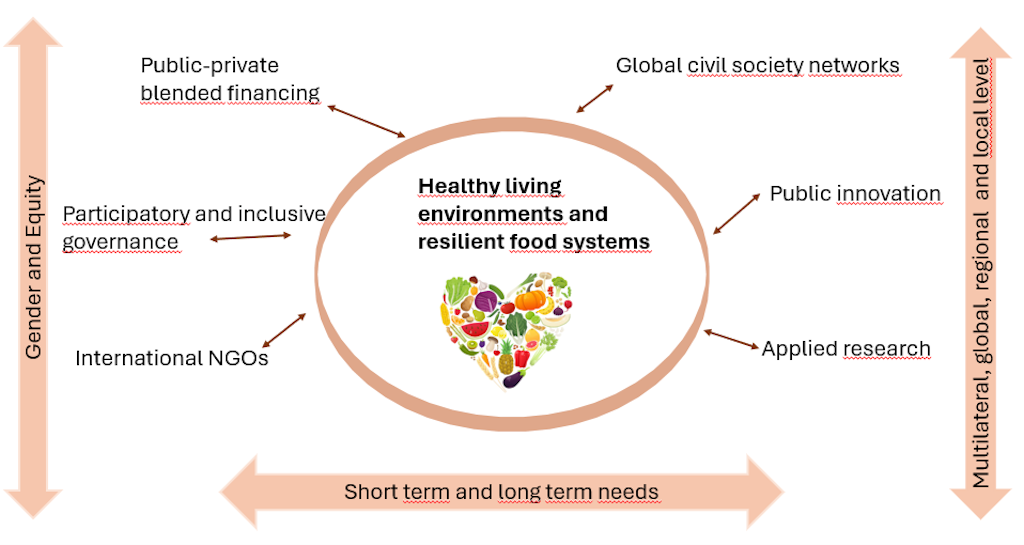 Gradually, this trajectory led to a systemic understanding of how food is sourced, processed, stored, distributed and consumed, and how consumption is linked to production and vice versa. Any food system must be understood in its institutional, environmental, political and social setting if its outcomes are to be improved.